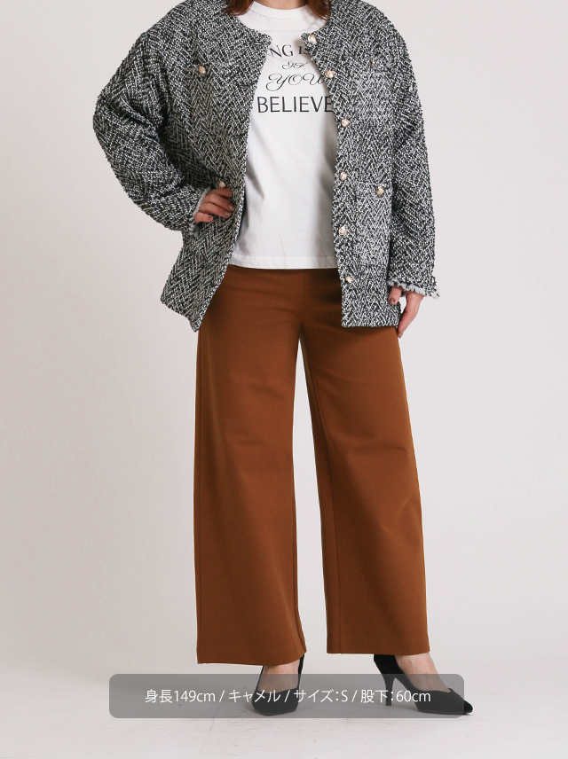 以前仕事用に黒を購入しヘビロテ 色違いも買ってみようと今回購入しました。 ワイドパンツでもすっきりした印象で身長156センチの私は裾のお直しなく着用出来ました