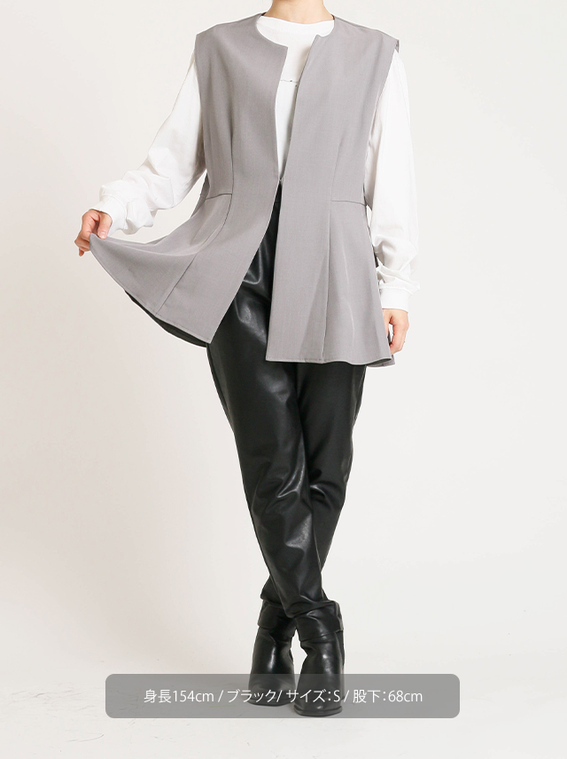 ■合成皮革 ●ウエスト総ゴム/裏地なし/ポケットあり(前のみ・後はダミー) |