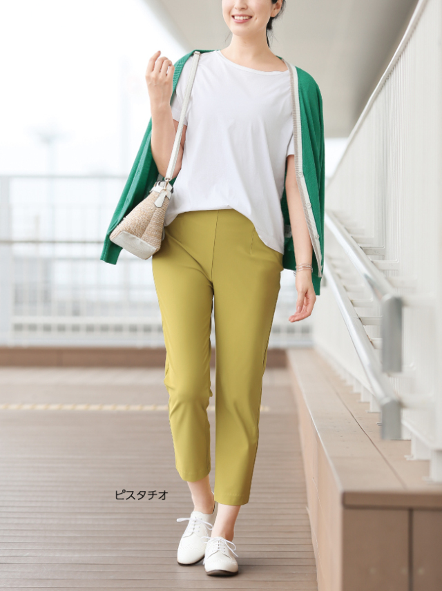 夏の定番!接触冷感スリムパンツと同じ素材を使い、足元軽やかな股下55㎝のクロップドパンツを作りました!!