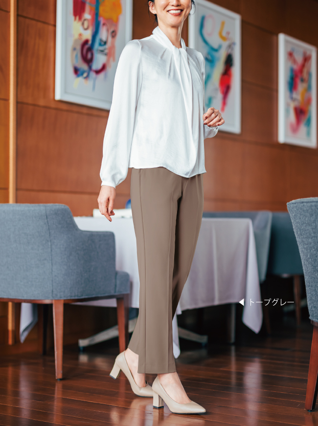 ARIKI独自の立体設計による、細見えのストレートシルエットが、