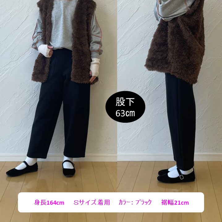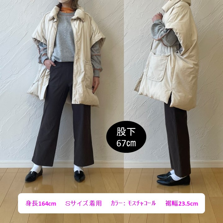 ゆとりのあるシルエットなので、脚の形も気にすることなく コーデを楽しむことができました。 172㎝の私には少し丈が短いですが、ショートブーツと合わせると 足元も引き締まった印象にないり、かっこよくはくことができたと 思います。(Mスタッフ)