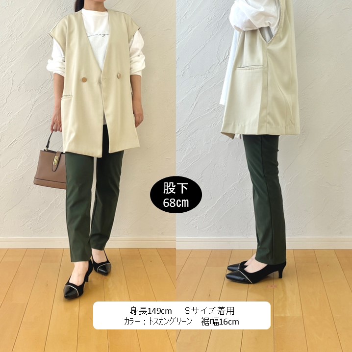 ベージュのジレを合わせましたが、大人っぽさもありつつ、とってもラフに着こなせましたよ。
