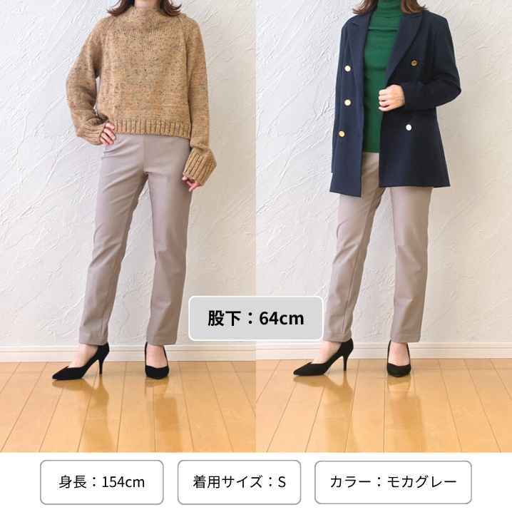 360度ストレッチ素材が体の動きにしなやかにフィットし、座ったりかがんだりしても突っ張りにくいのも魅力。上品なストレートシルエットが脚をまっすぐ美しく見せ、ウエストからヒップにかけての立体的なラインが女性らしい曲線を描きます。暖かさと美しさ、そして動きやすさを兼ね備えた、冬に頼れる一本です。