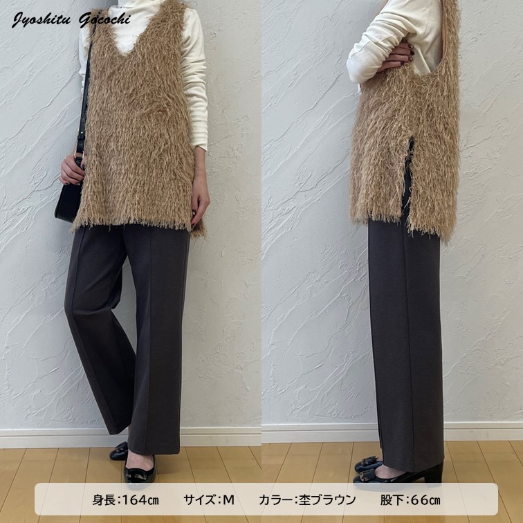 レッグラインを拾いにくいセミワイドシルエットに、センターのピンタックできちんと感もプラス。