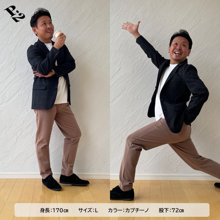 「MIYABI」シリーズのセミワイドパンツは、見た目も着心地も妥協しない一本です。