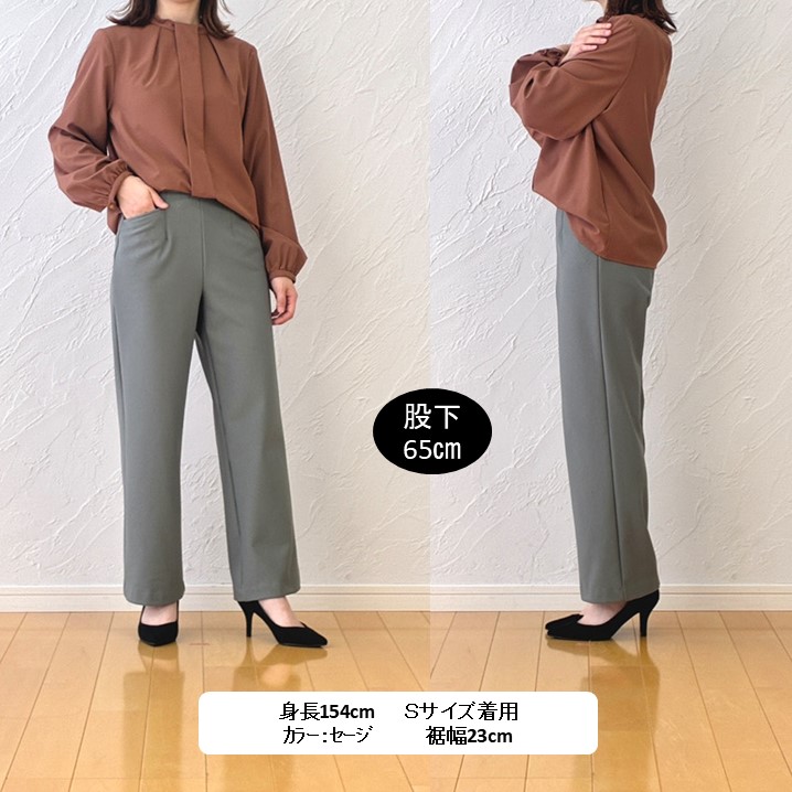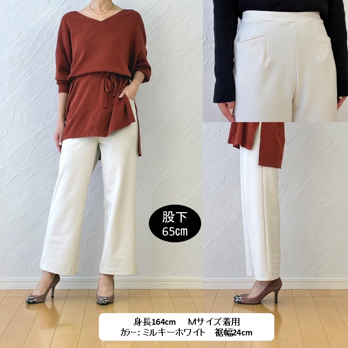 身重164cm・・Mサイズを着用して股下65cmがぴったり。