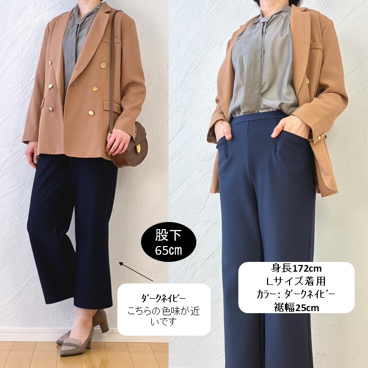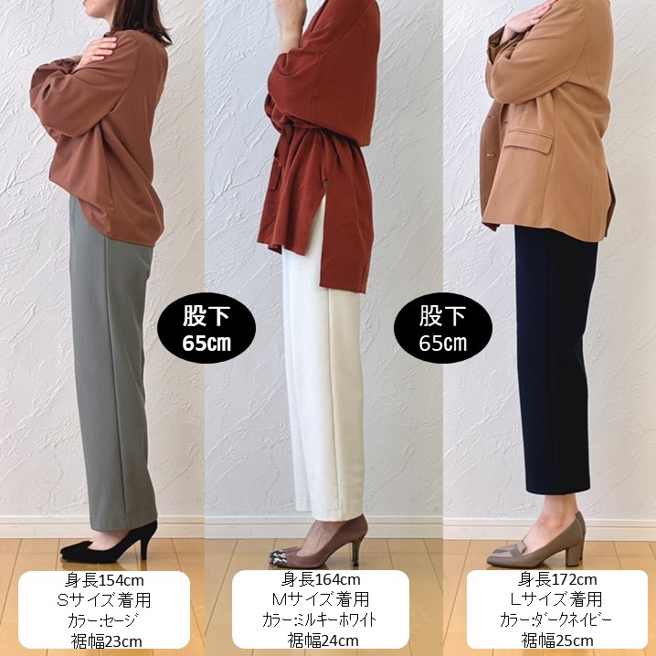 身重172cm・・Lサイズを着用して股下65cmで足首がきれいに見える丈感。
