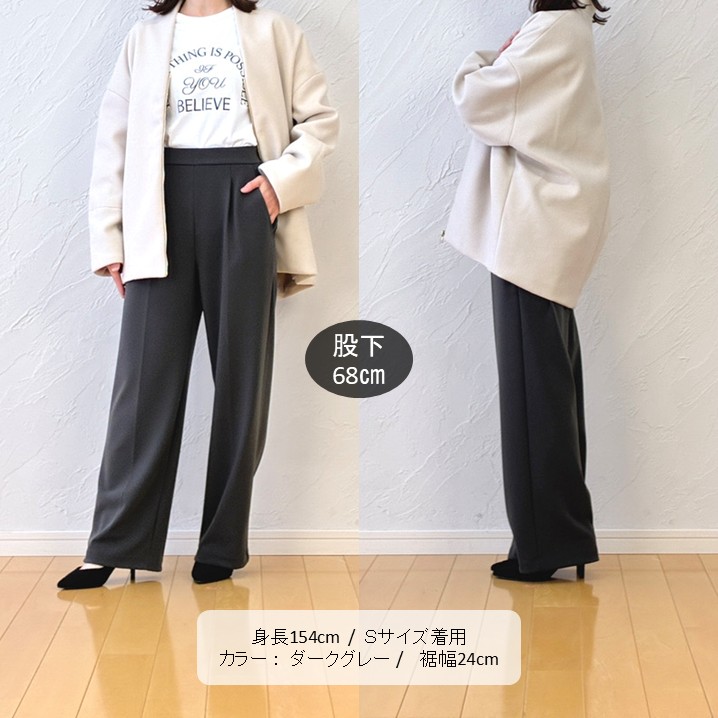 そんなボナンザの生地をワイドシルエットに仕上げました!ゆとりのあるストレートのような形なので裾が広がりすぎず、