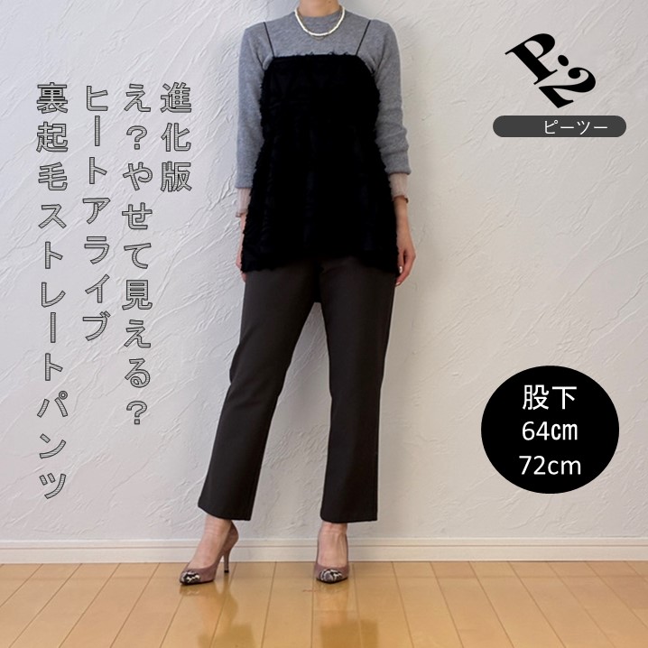 ●【ピーツー】 進化版 え!?やせてみえる?ヒートアライブ 裏起毛ストレートパンツ