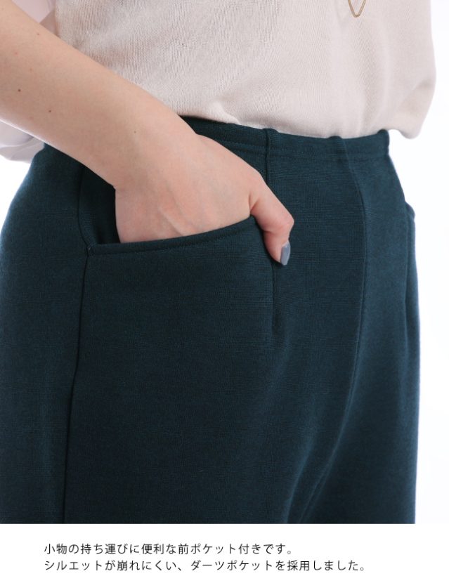 前後に入れたダーツが腰まわりをきれいに整え、立体パターンで動きやすさもしっかりキープ。座ったり立ったりが多い日でも無理なくはける、頼れる仕立てです。“気づけばつい手に取ってしまう冬の一本”になりそうです。