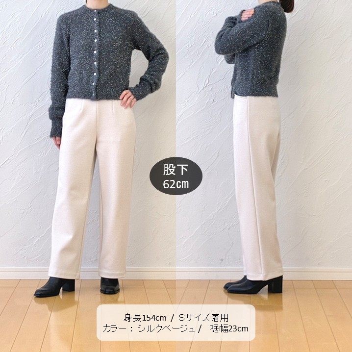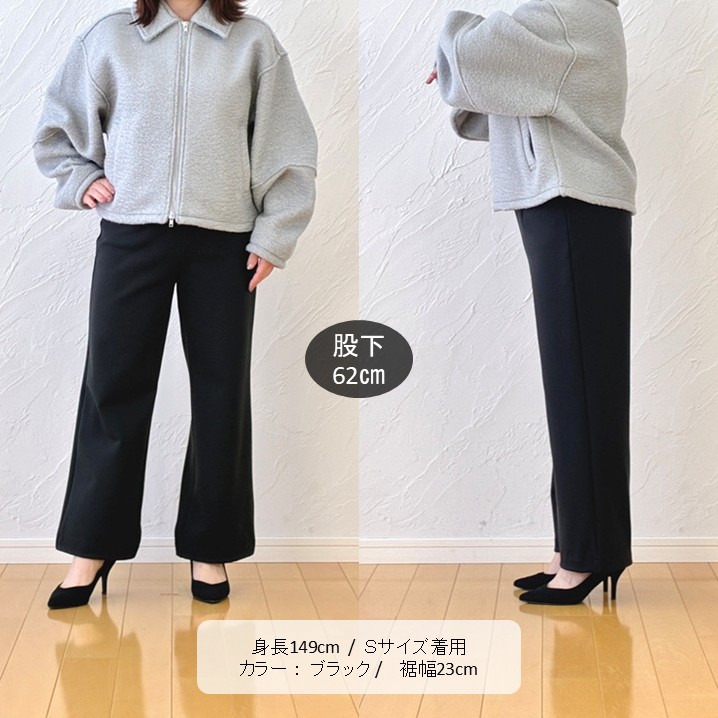 低身長でも野暮ったくならない絶妙な丈感で、足首周りがすっきり見えるバランスに。