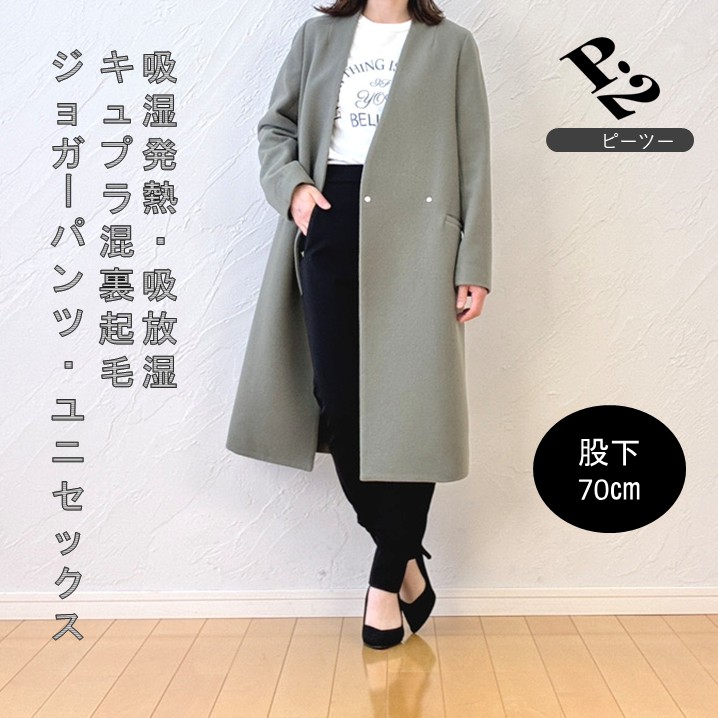 ●【ピーツー】 吸湿発熱・吸放湿 キュプラ混 裏起毛ジョガーパンツ<ユニセックス>