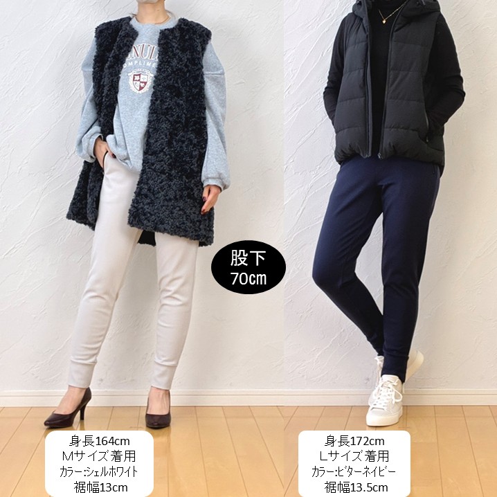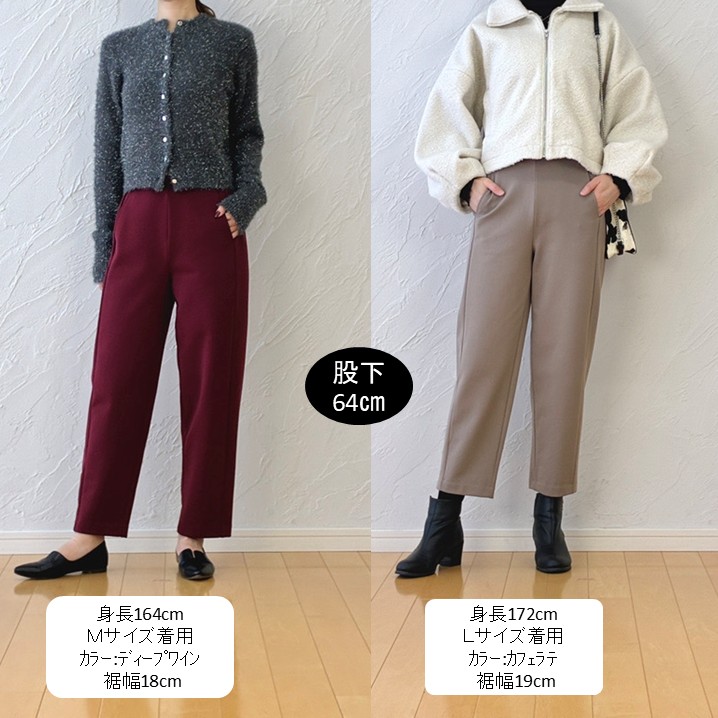 高身長でも短く見えないのがこのパンツの魅力!Lサイズ着用で足首が少し見える軽さの丈に。