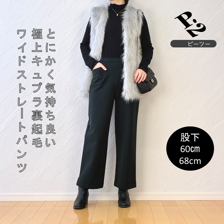 ●【ピーツー】 とにかく気持ち良い 極上キュプラ裏起毛 ワイドストレートパンツ