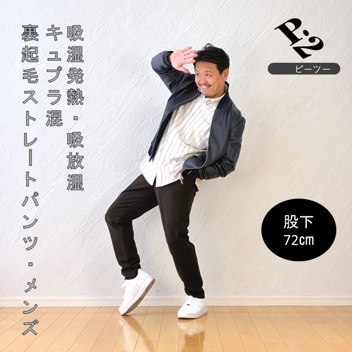 ●【ピーツー】 吸湿発熱・吸放湿 キュプラ混 裏起毛ストレートパンツ<メンズ>