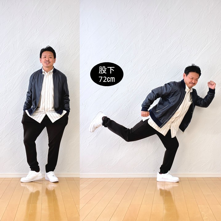 スポーティーなアウターと、アクティブなスタイルに。股下70cmでも、背が高い方はほどよいジャスト丈ですっきり見えます。