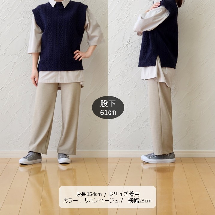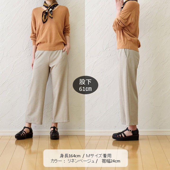 リネンベージュのパンツは、どんな色も優しく受け止めてくれる万能アイテム。