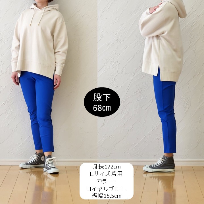 足首がのぞく丈感で、軽やかさと抜け感を演出。ハリのある素材なので、脚のラインをきれいに見せてくれます。