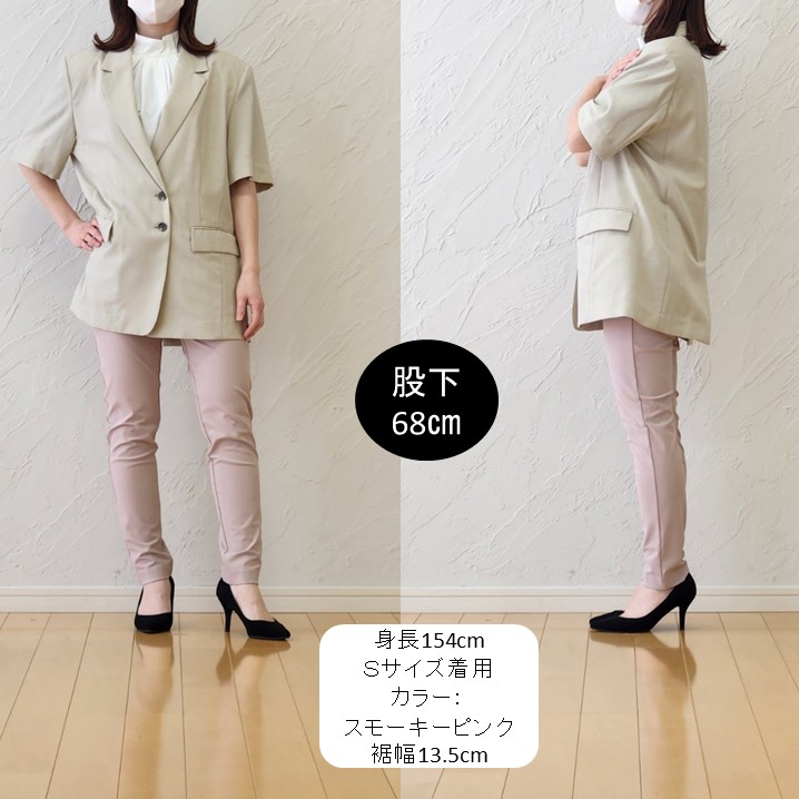テーパードのすっきりラインが、ジャケットスタイルを軽やかに見せてくれるのもポイントです。