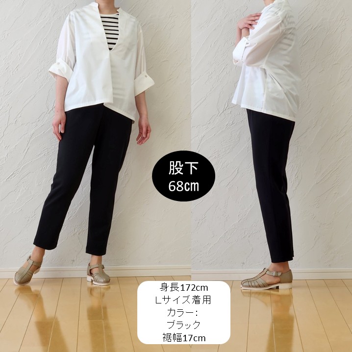 脚のラインを拾いにくく、きれいめにもカジュアルにも着回せます。