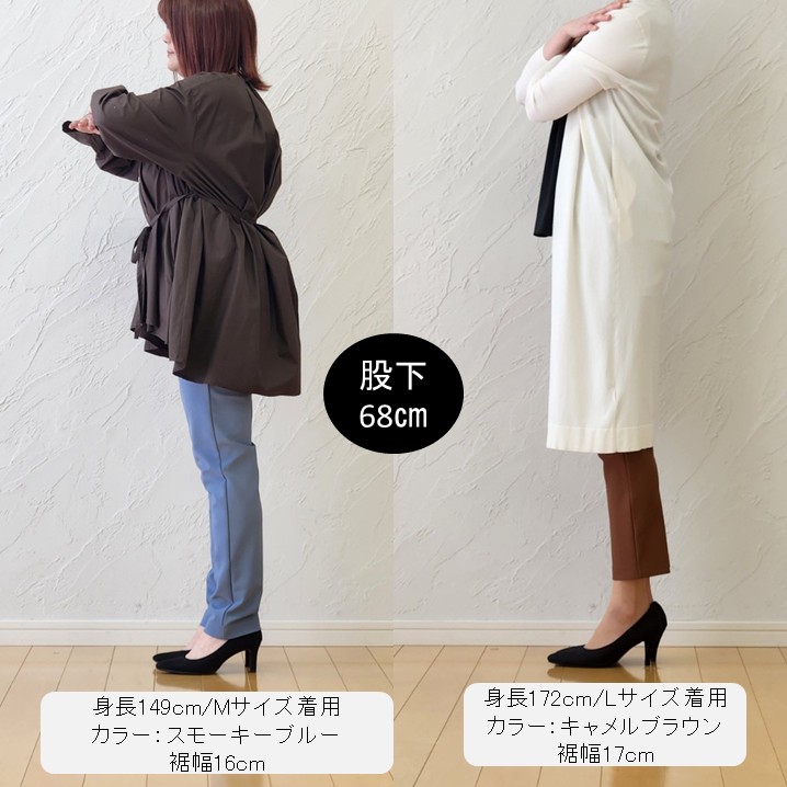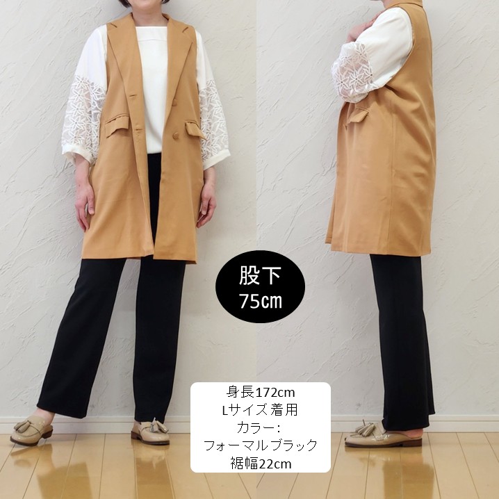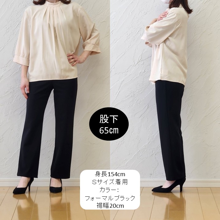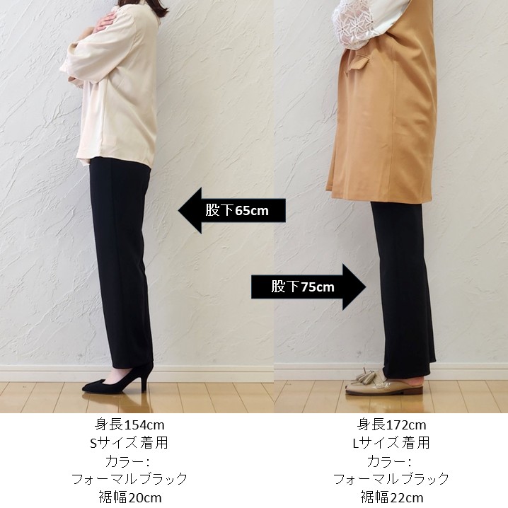 今回は60cm丈もご用意しています。上品さと機能性を兼ね備えた、大人のためのフォーマルブラックパンツ。