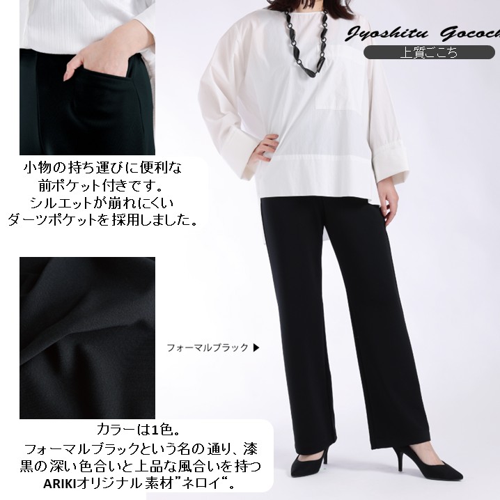 ARIKIオリジナル素材“ネロイ”を使用した、美脚ストレートパンツのご案内です。