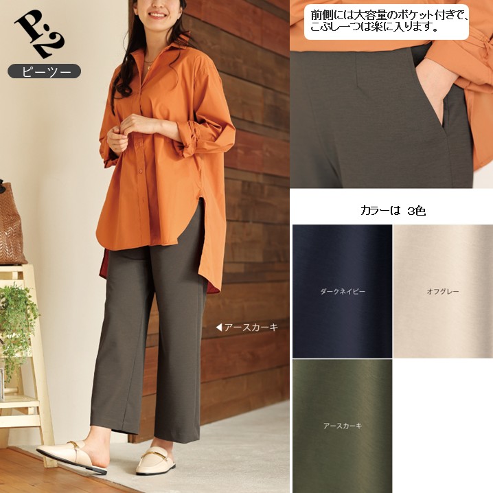 【P2<ピーツー>】 麻調ポンチセミワイドパンツ