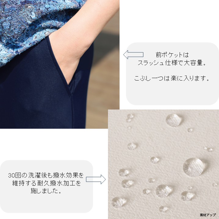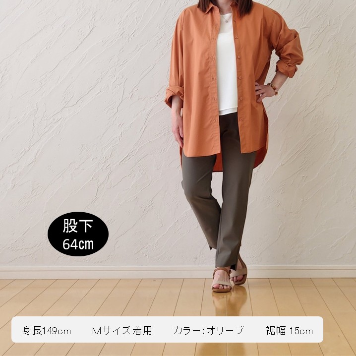 スタッフより・・接触冷感素材なので、肌に触れた瞬間にひんやりと心地よく感じます。裾のスリミングカットでより足首がすっきり細く見えます(^^)