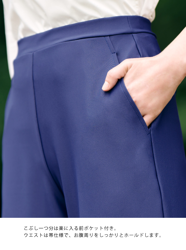 スタッフより・・接触冷感生地なので肌触りはサラサラ、ワイドパンツは風通りも良くとっても涼しいです♪折りたたんでもシワになりにくいARIKIパンツは旅行はもちろん、ドライブやリゾートにもオススメですよ!(^^)!