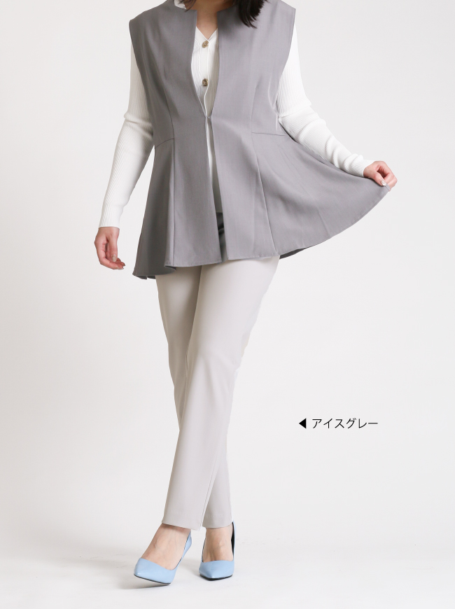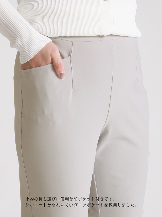 スタッフより・・太ももから膝まではゆったり、膝下から足首にかけてストレートラインになているので、足全体がよりスッキリ見えます。