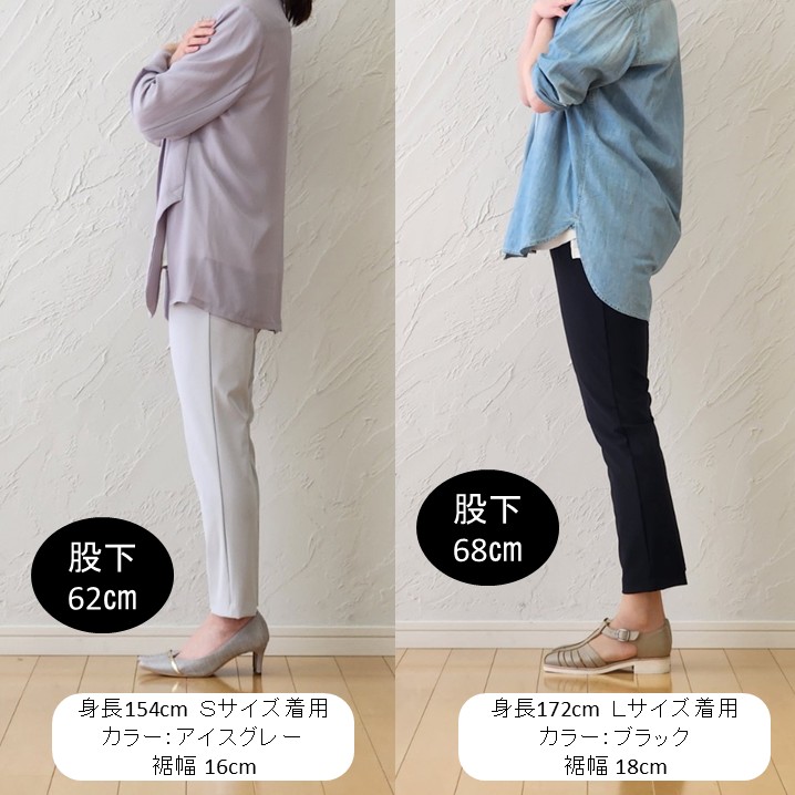 股下は62cmと68cmの2種類。小柄な方も、すらっと見せたい方も、自分に合う丈を選べるのが嬉しいところ。
