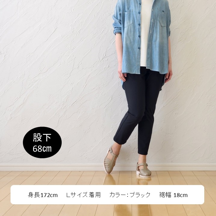 スタッフより・・淡色でも透けにくいので安心して着られます。股下丈62cmなのでアンクルパンツとしてもはけます。