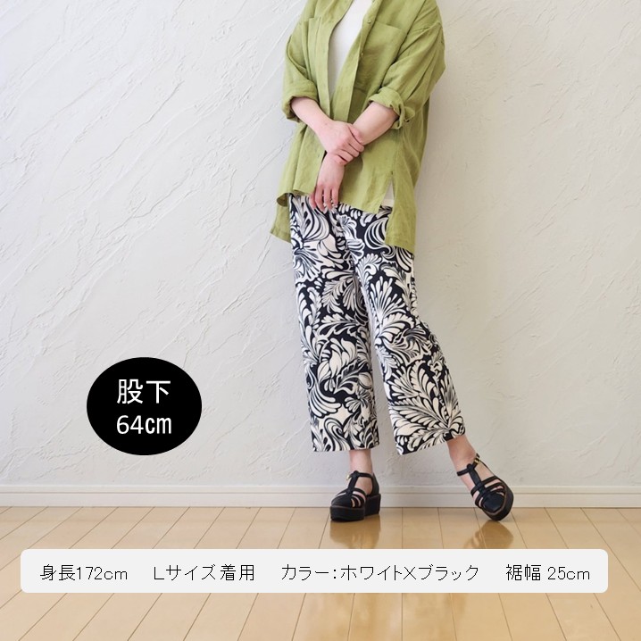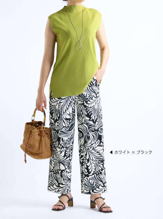 モノトーンのボタニカル柄は、見た目にも涼しげで、コーデの主役にぴったり。